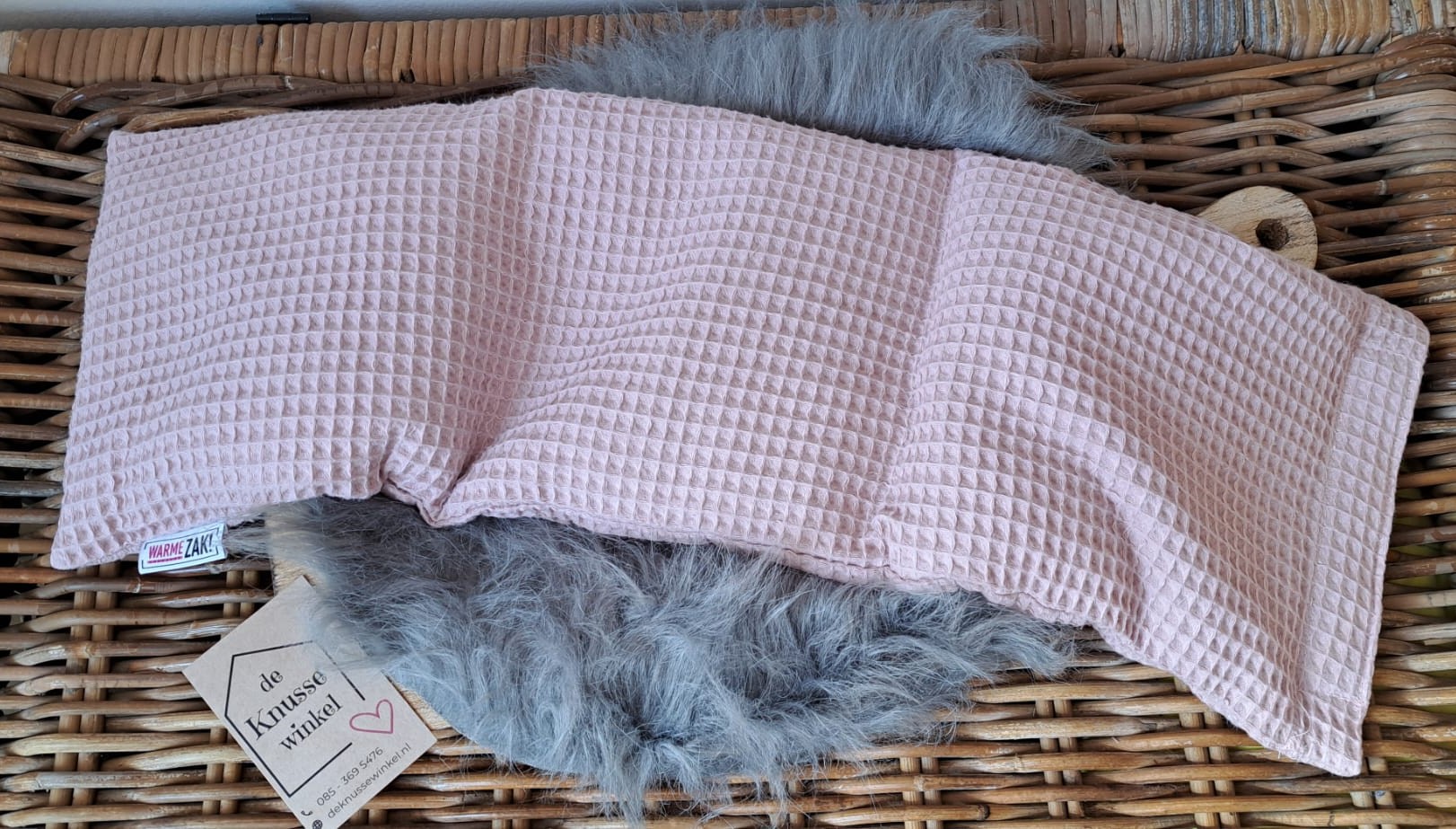 Rustgevend en stijlvol: de Warmezak! in oudroze wafelstof is jouw perfecte metgezel voor warme én koele momenten. De zachte tint en textuur geven deze warmtezak een elegante, huiselijke uitstraling.